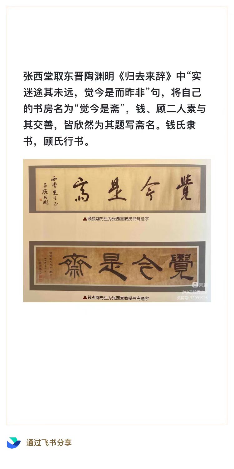 “張君樸學,極所欽遲”。後劉盼遂先生在此信札題跋云:任公信札所說“張君即謂西堂”,並云任公在清華授課時,“以西堂少年精進,時舉以策勵院中諸生,此爲我所目擊者”②