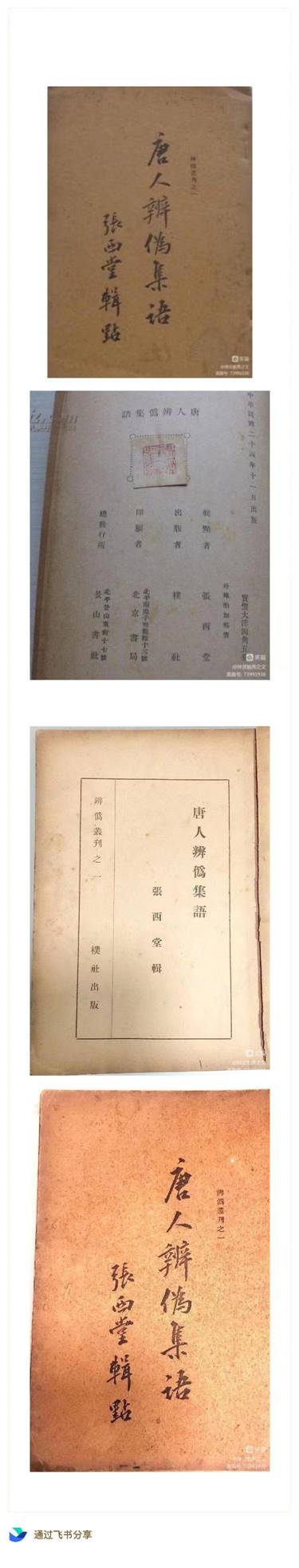 月北平景山書社出版);«唐人辨僞集語» 完稿並於一九三六年十一月由樸社出版;
